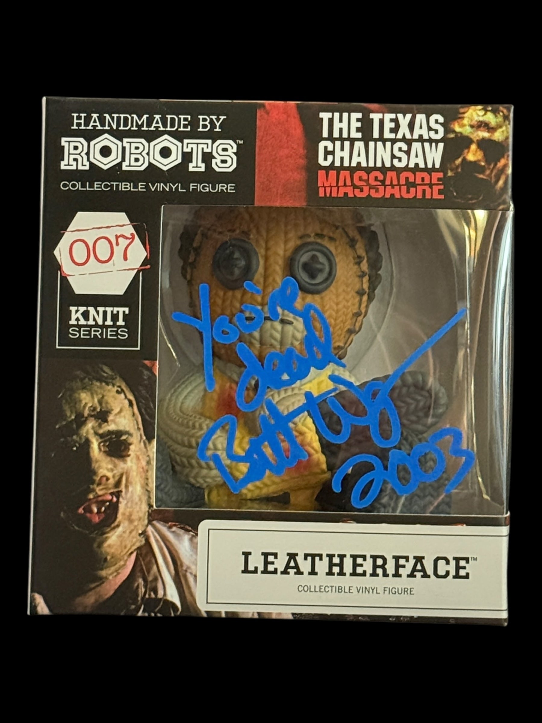 Brett Wagner signed Handmade by Robots Knit Series Leatherface Vinyl Figure — In Stock & Ready to Ship